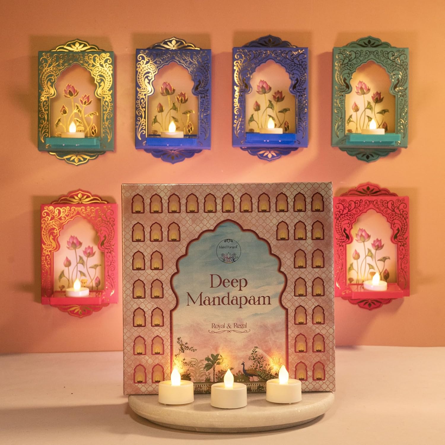 Taking the legacy forward of Deep Dwar, Introducing DEEP MANDAPAM – crafted to bring an air of vintage royalty to your space, These wall Jharokhas comes with beautiful golden sliders that let you switch up your backdrop effortlessly for different decor moods. This compact size jharokhas are perfect addition to your festive decor offering versatile charm for walls, door entrances, lobbies, staircases, and balconies. Affix with ease using our residue-free, reusable glue and give your walls a glow of timeless craftsmanship. Compact and thoughtfully designed, Deep Mandapam Jharokha Boxes make for the perfect giftingchoice for housewarmings, wedding decor, or festive occasions.