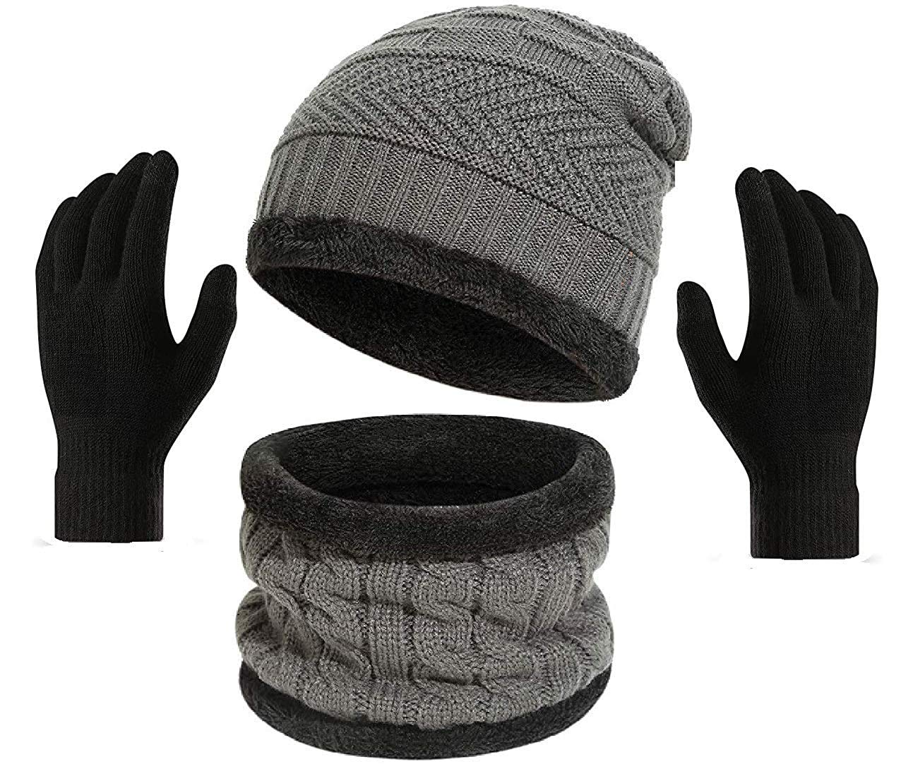 Generic Name : Gajraj Winter Knit Beanie Cap Hat Neck Warmer Scarf and Woolen Gloves Set for Men & Women (3 Piece)