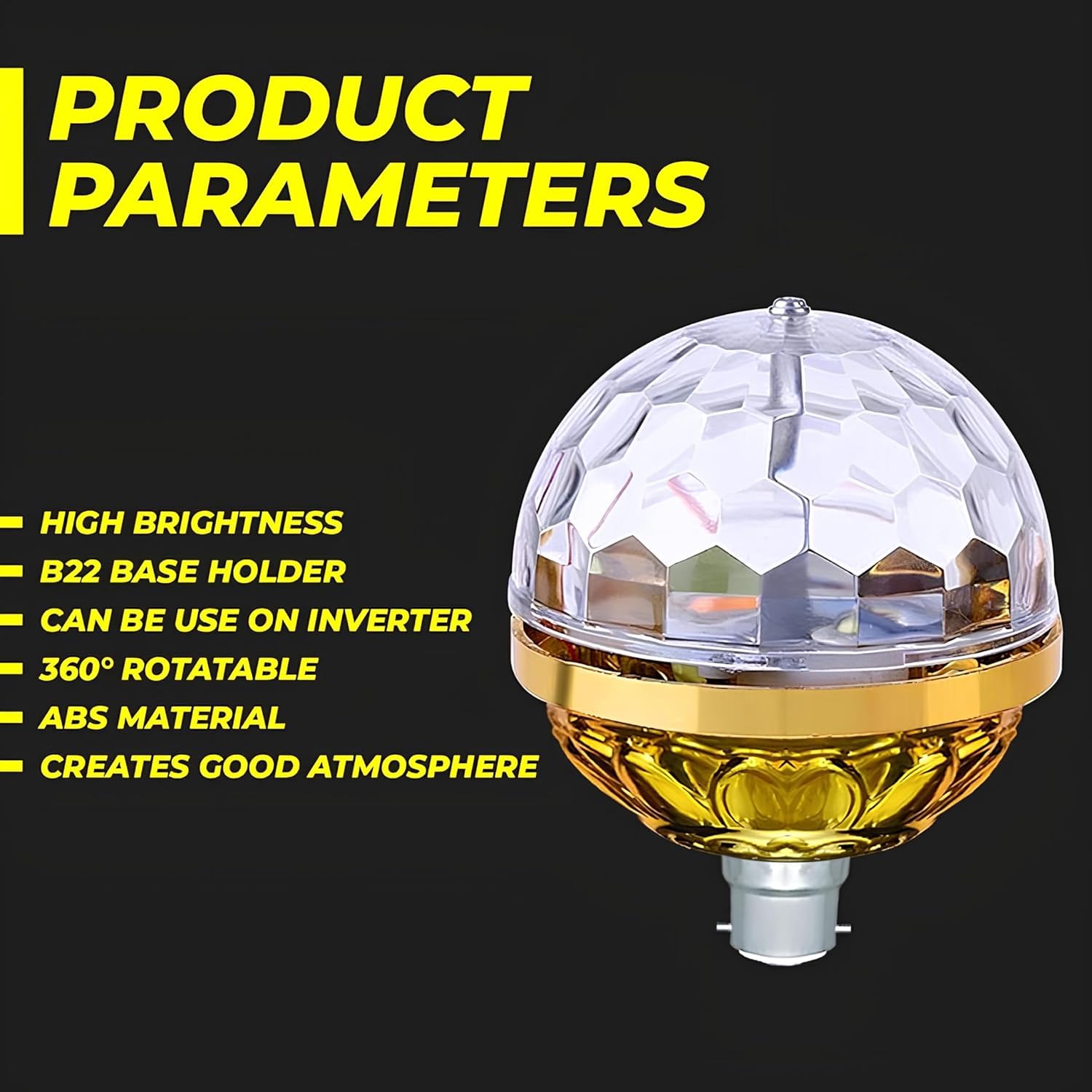 Turn any space into a dance floor with the Golden Mini LED Rotating Disco Light! This compact yet powerful crystal ball light features 360-degree rotation that projects vivid, multicolor lights in every direction—instantly transforming your room, party, or event into a lively celebration.