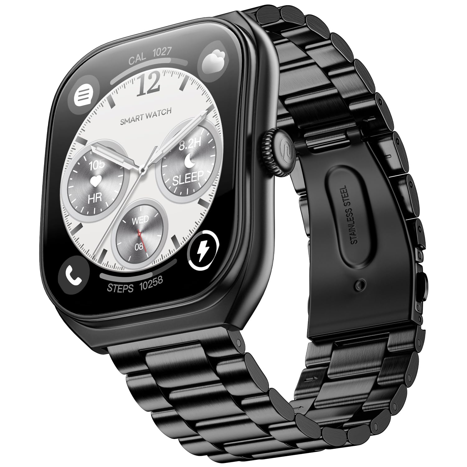 100+ Watch Faces & 5 Premium Colours – Personalize your look with Jet Black, Space Blue, Nickel Brown, Silver Grey, or Elite Black and 100+ stylish watch faces.