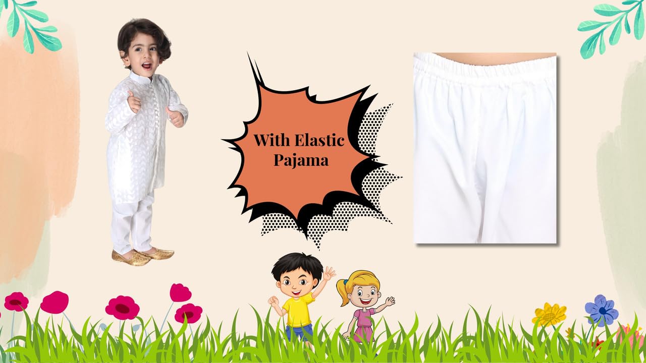 Good quality cotton fabric kurta pajama set for boys. Very comfortable and skin friendly. This kurta pyjama set is perfect for any occasion whether its for party wear, wedding, casual wear self design all over lukhnowi chikankari embroidery, has full sleeves, mandarin collar, button closure and comes with cotton relaxed pyjama. FASTIVAL- EID , DIWALI , HOLI ,RAKSHBANDHAN , BAKRA EID ALL FASTIVAL USED KIDS AND BOYS & BABY KURTA PYJAMA SET